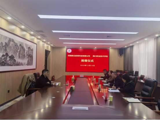 12月18日上午,河南新众教育科技有限公司捐赠仪式在我校开元校区举行。校党委副书记李明臣与河南新众教育科技有限公司总经理张党出席仪式并签署捐赠协议。教务处处长李嘉主持捐赠仪式。